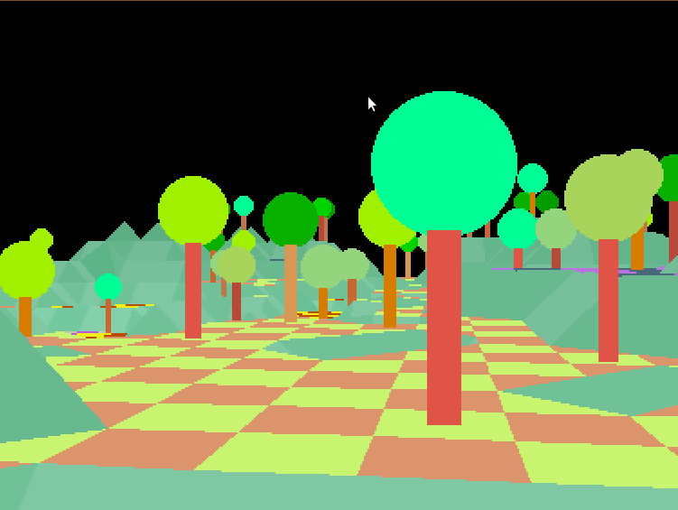 There was an incredible good 8 bit game called Sentinel, this real time C engine for 286 was heavily inspired on it. A tweaked 256 mode was used, very handy for fast flat polygon filling coupled with the ‘formidable’ word with of 16 bits.