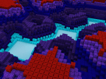 A new picture has been added to the collection at the art tab. Its name is ‘The opposite river bank’, depicts a copper veined marble landscape based on a variant of Alberto’s Maze function. These are some zoomed details of the high definition printable version here. The Raydiant engine has been used to render it. This particular view of the scenario was obtained during a real time full global illumination interactive walk.